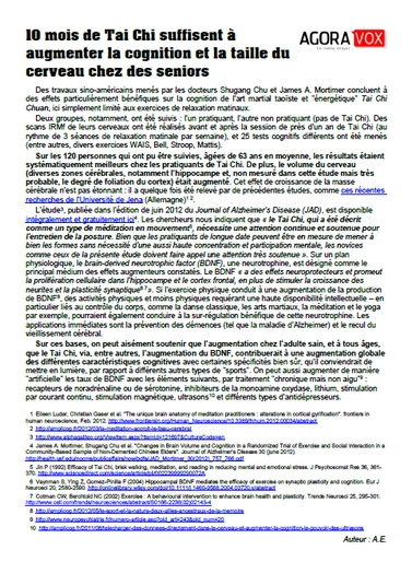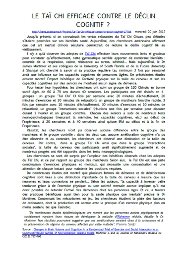 10 mois de Taiji suffisent...Le Taiji efficace contre le déclin cognitif?Le combat en vaut la peine